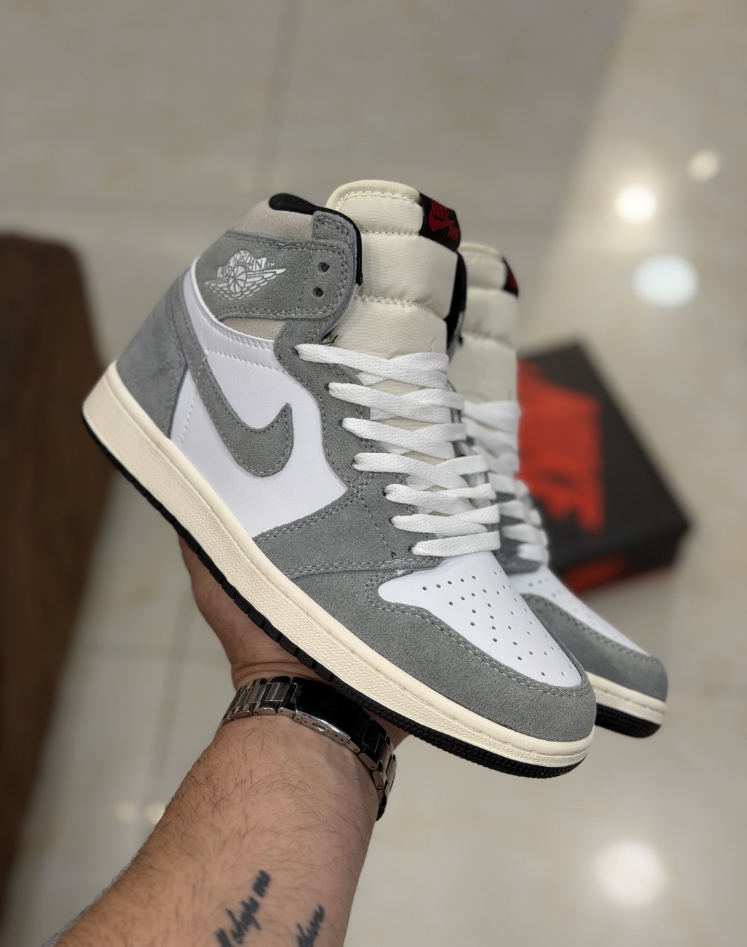 نایکی ایر جردن ۱ ساقدار سفید طوسی || Nike Air Jordan 1 High OG Washed Black (کد ۸۲۸)